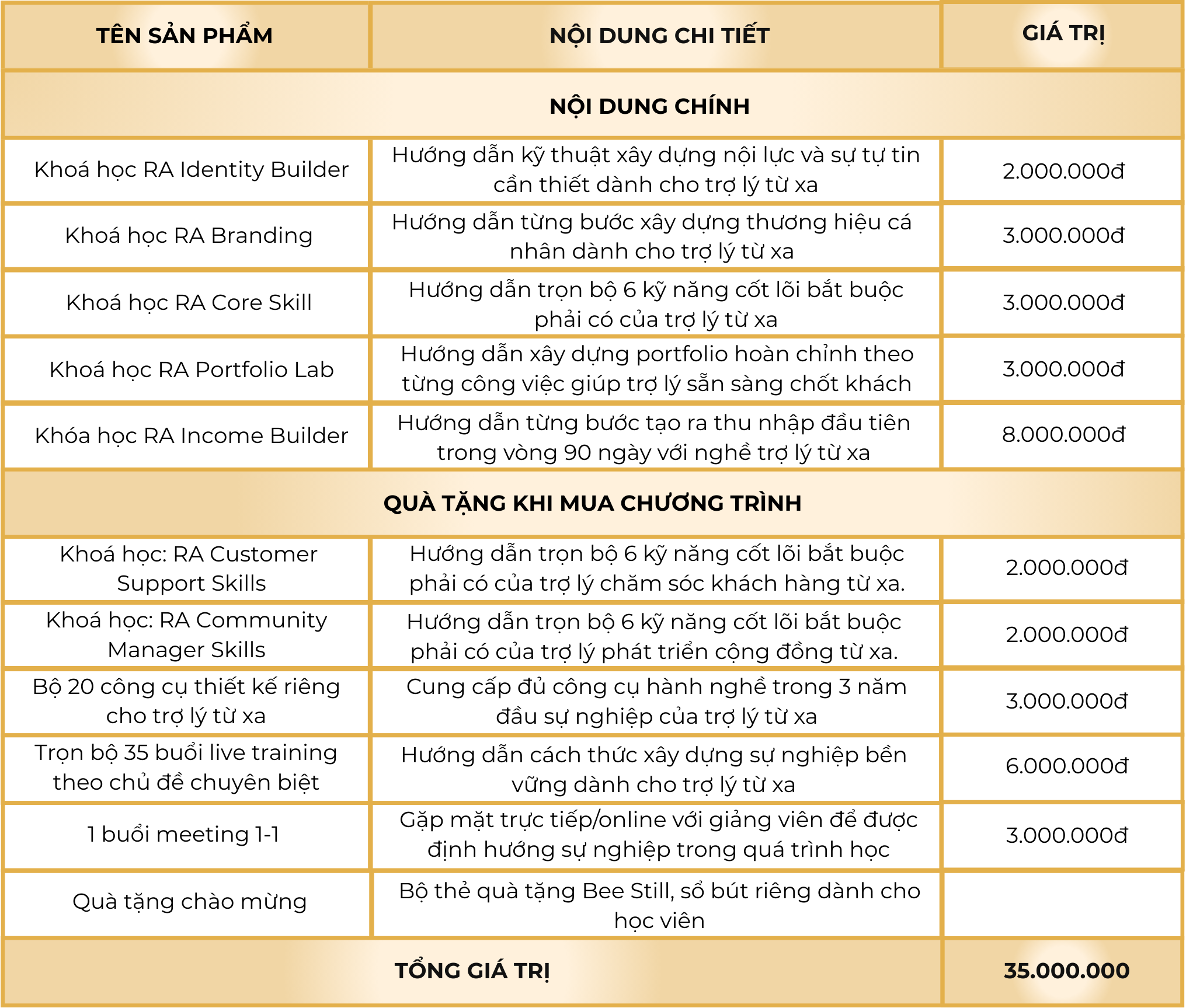 RA STARTER KIT được thiết kế cho người đã biết về nghề trợ lý từ xa nhưng chưa có khách thực. Nếu bạn đã tìm hiểu qua và sẵn sàng hành động, đây là chương trình phù hợp để đi từ 'biết' sang 'làm được'.