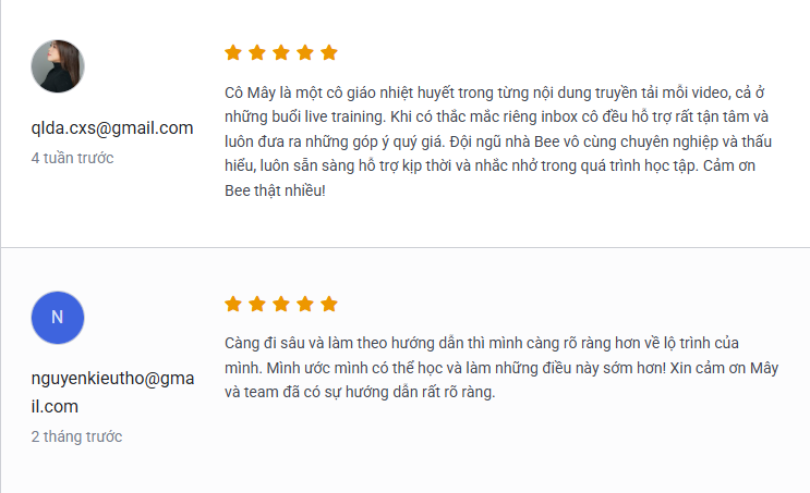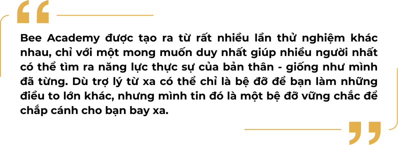 Mình thật sự biết ơn Bee Academy, cô Mây cùng các bạn trợ lý đã đồng hành, động viên và cùng mình tiến trên hành trình này.
